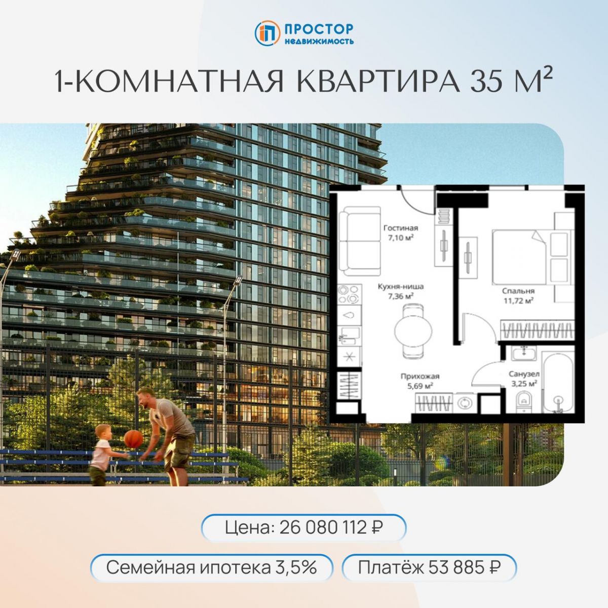 ➡️ Мы в Просторе понимаем: когда покупаешь квартиру, хочется жить, а не просто числиться по адресу. Поэтому собрали варианты, где метраж нормальный, а цена не завышена: