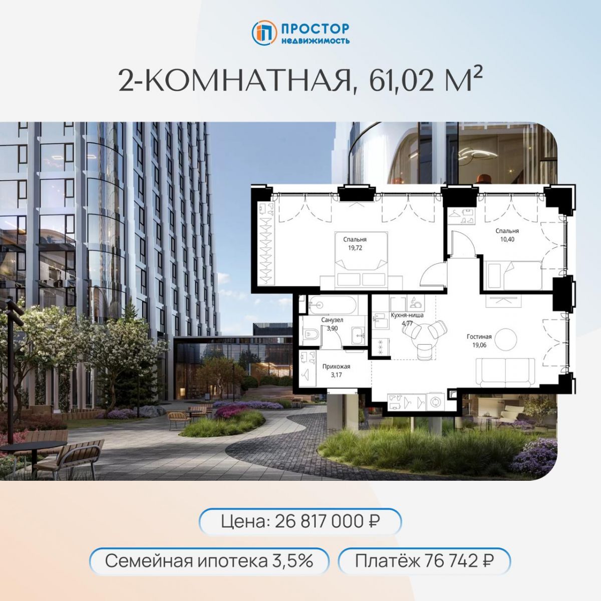 ✅ 2-комнатная 61,02 м²
