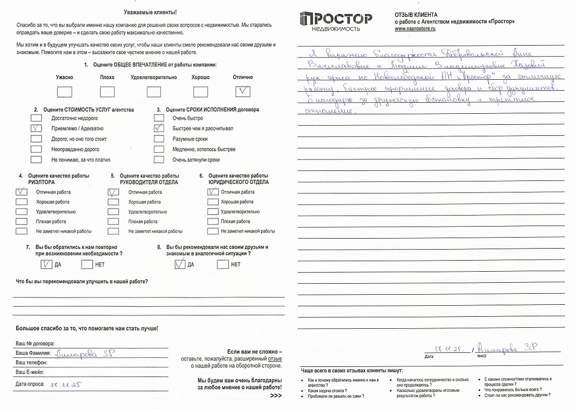 Отзывы агентства недвижимости «Простор»